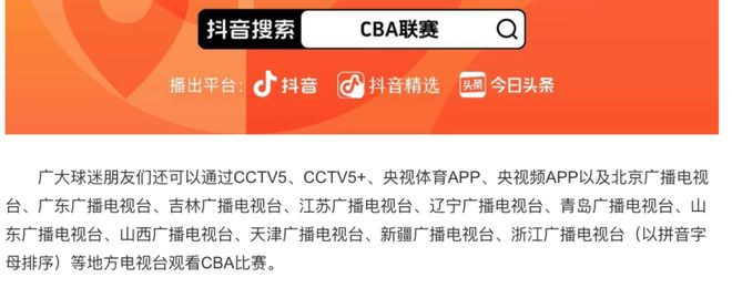 过去7个赛季的深度合作伙伴咪咕从CBA的赞助名单上消失。直到新赛季揭幕战的前一天,联赛官方才宣布抖音成为新赛季的比赛直播平台。