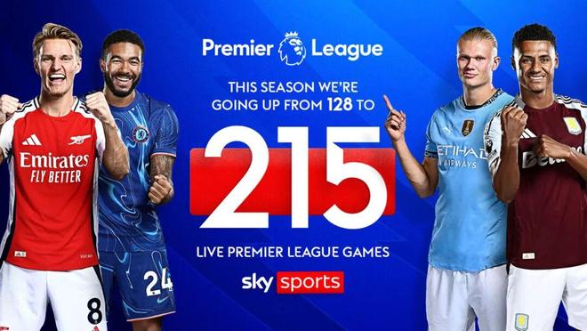 天空体育承接了英超的大部分赛事直播,但请注意,这“大部分”也只是380场比赛中的215场而已。
